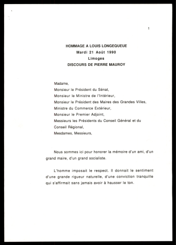 discours, coupures de presse.