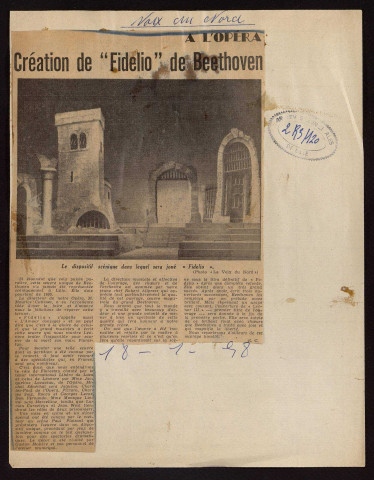 Le fonds présente également un historique du théâtre Lequeux (détruit par un incendie en 1903), ainsi que quelques programmes de représentations données au Grand théâtre de Roubaix et au Théâtre municipal de Tourcoing.