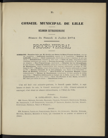 Les Archives municipales de Lille conservent les procès-verbaux de séances à partir du 20 février 1790. Ils sont manuscrits jusqu'au 29 Novembre 1873 puis imprimés.