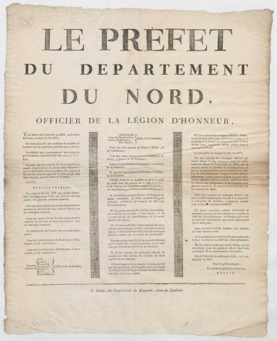 Arrêté préfectoral pour appliquer la levée en masse dans le Nord décidée par le gouvernement impérial