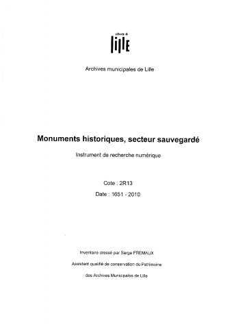 Cette sous-série conserve les dossiers relatifs au secteur sauvegardé et aux monuments historiques lillois.