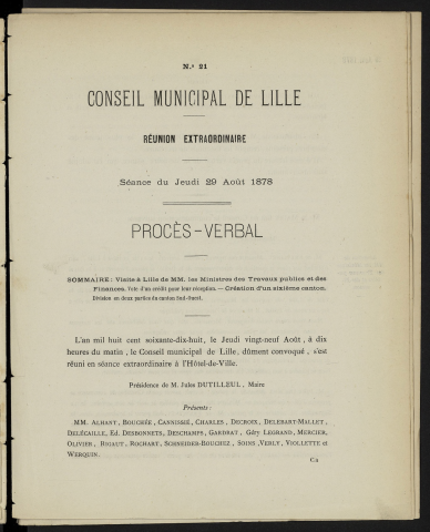 Les Archives municipales de Lille conservent les procès-verbaux de séances à partir du 20 février 1790. Ils sont manuscrits jusqu'au 29 Novembre 1873 puis imprimés.