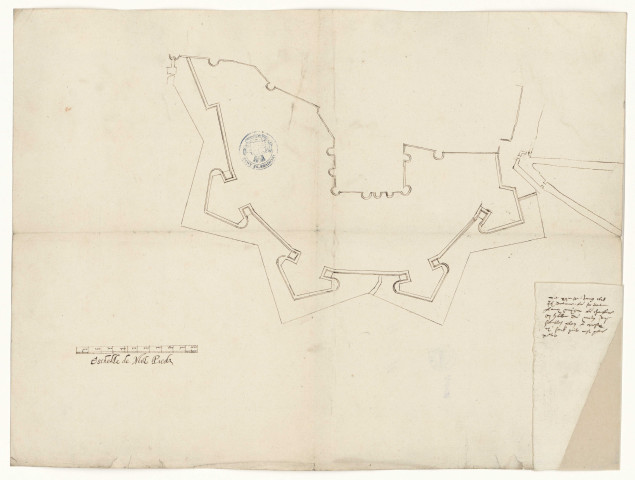 Plan et description, "demonstrant la forme du ragrandissement de ceste ville de Lille, ensemble la designation des héritages y abordant, et enclavant tant au nouveau fossez que dedans le nouveau rampart de ceste dit ville, renseignées suivant l'ordre des lettres alphabétiques et autres particularités". Signé : Jacques Petit. Autre plan des fortifications de la ville portant cette inscription : "ayant cestuy plan este veu et examiné au Conseil privé, y a este ordonne que l'agrandissement s'acheroit en suyte d'Ieeluy, selon quoy ont esté despeschees lettres patentes d'octroy ce jourdhuy XVIIe doctobre mille six cent dix huyt soubz ma signature tesmoing Gottignies". Autre plan indiquant l'agrandissement de la ville du coté du château de Courtrai.