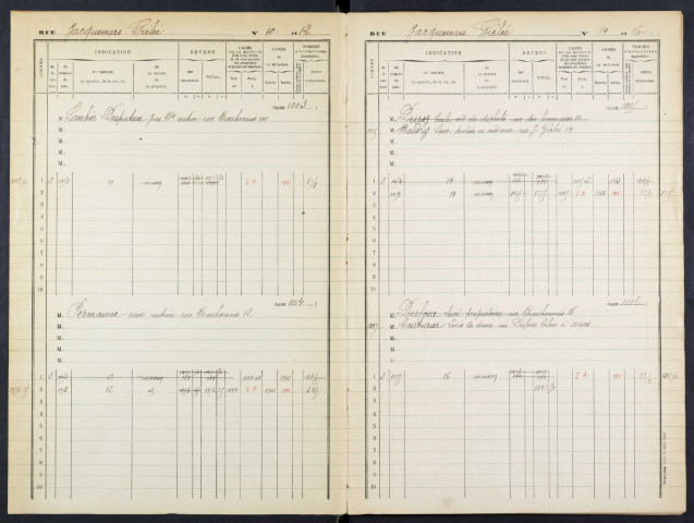 Ces deux ensembles de documents cadastraux ont brûlé lors de l'incendie de 1916. Les registres sont des reconstitutions datant de 1916-19175