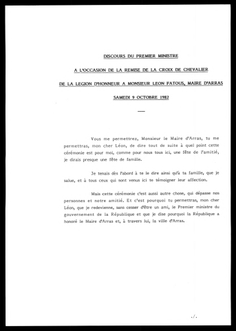 discours, invitations, coupures de presse, correspondance.