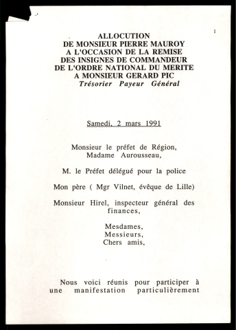 discours, invitations, coupures de presse, correspondance.