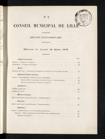 Les Archives municipales de Lille conservent les procès-verbaux de séances à partir du 20 février 1790. Ils sont manuscrits jusqu'au 29 Novembre 1873 puis imprimés.