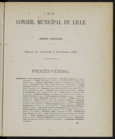 Les Archives municipales de Lille conservent les procès-verbaux de séances à partir du 20 février 1790. Ils sont manuscrits jusqu'au 29 Novembre 1873 puis imprimés.