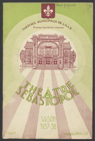 Le fonds présente également un historique du théâtre Lequeux (détruit par un incendie en 1903), ainsi que quelques programmes de représentations données au Grand théâtre de Roubaix et au Théâtre municipal de Tourcoing.