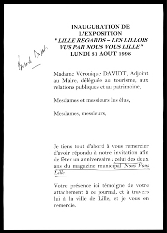 discours, invitations, coupures de presse, correspondance.