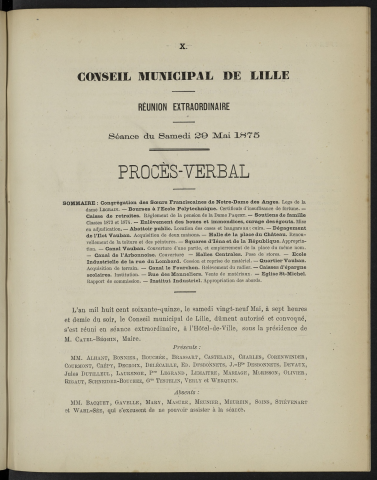 Les Archives municipales de Lille conservent les procès-verbaux de séances à partir du 20 février 1790. Ils sont manuscrits jusqu'au 29 Novembre 1873 puis imprimés.