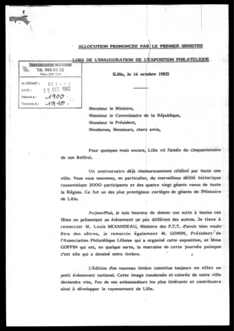 Communicable au bout de 0 ans à partir de 16/10/1982