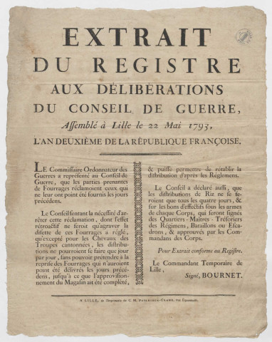 Extrait du registre aux délibérations du conseil de guerre assemblé à Lille