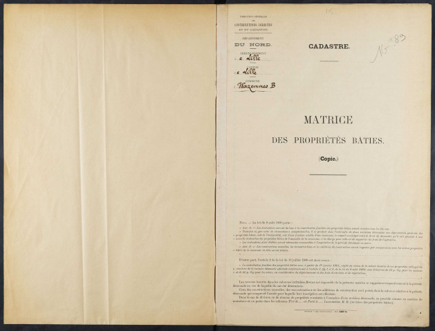 La Révolution Française a donné une impulsion qui a abouti sous l'Empire à la création d'un véritable cadastre. La loi de 1791 instituant la contribution foncière, et par là même le cadastre, a amené la municipalité de Lille à produire une série de dix registres inventoriant les propriétés foncières de la ville. Malheureusement, ces registres n'existent plus ; il ne reste plus que la trace de leur existence dans le fonds révolutionnaire3.