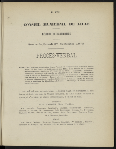 Les Archives municipales de Lille conservent les procès-verbaux de séances à partir du 20 février 1790. Ils sont manuscrits jusqu'au 29 Novembre 1873 puis imprimés.